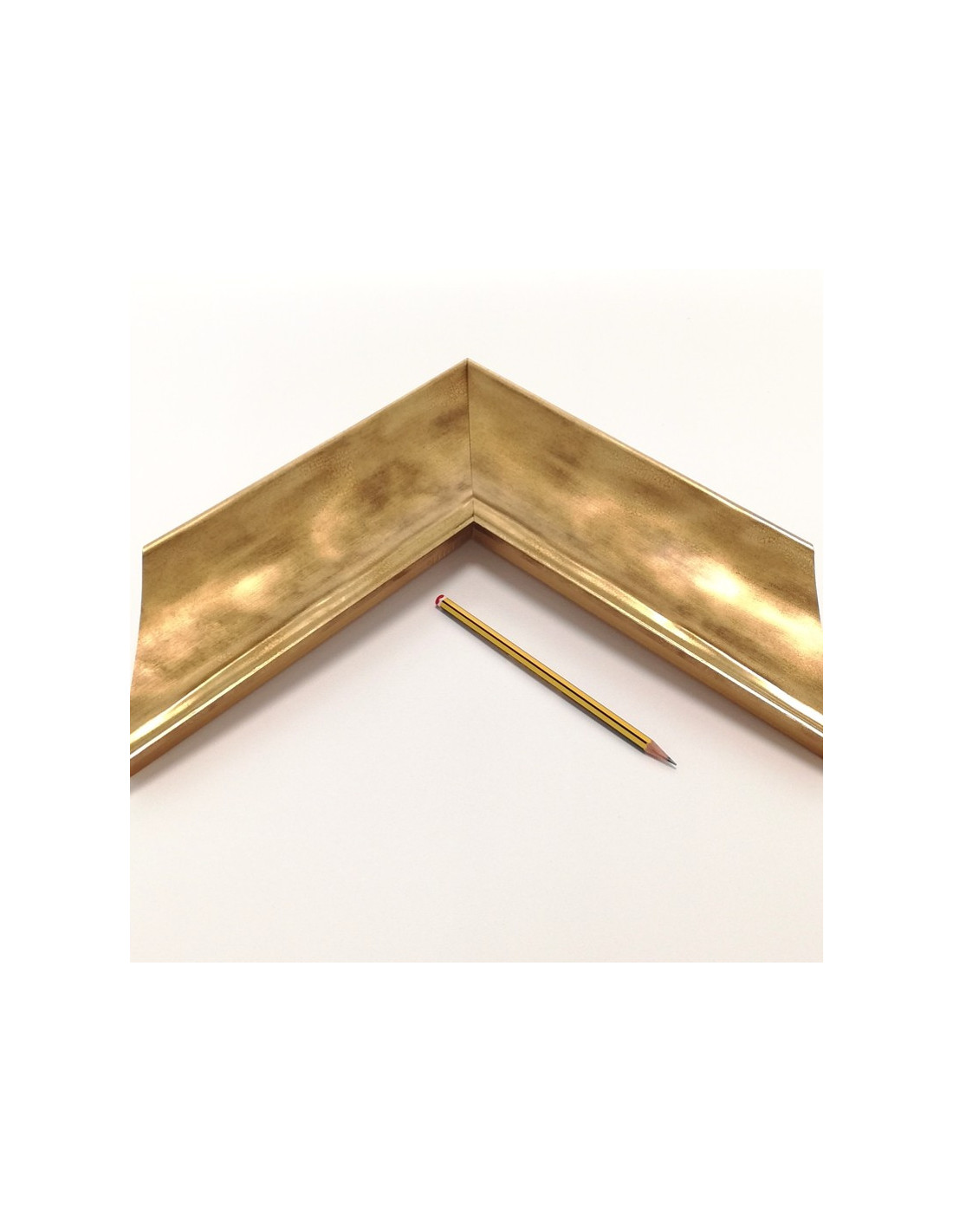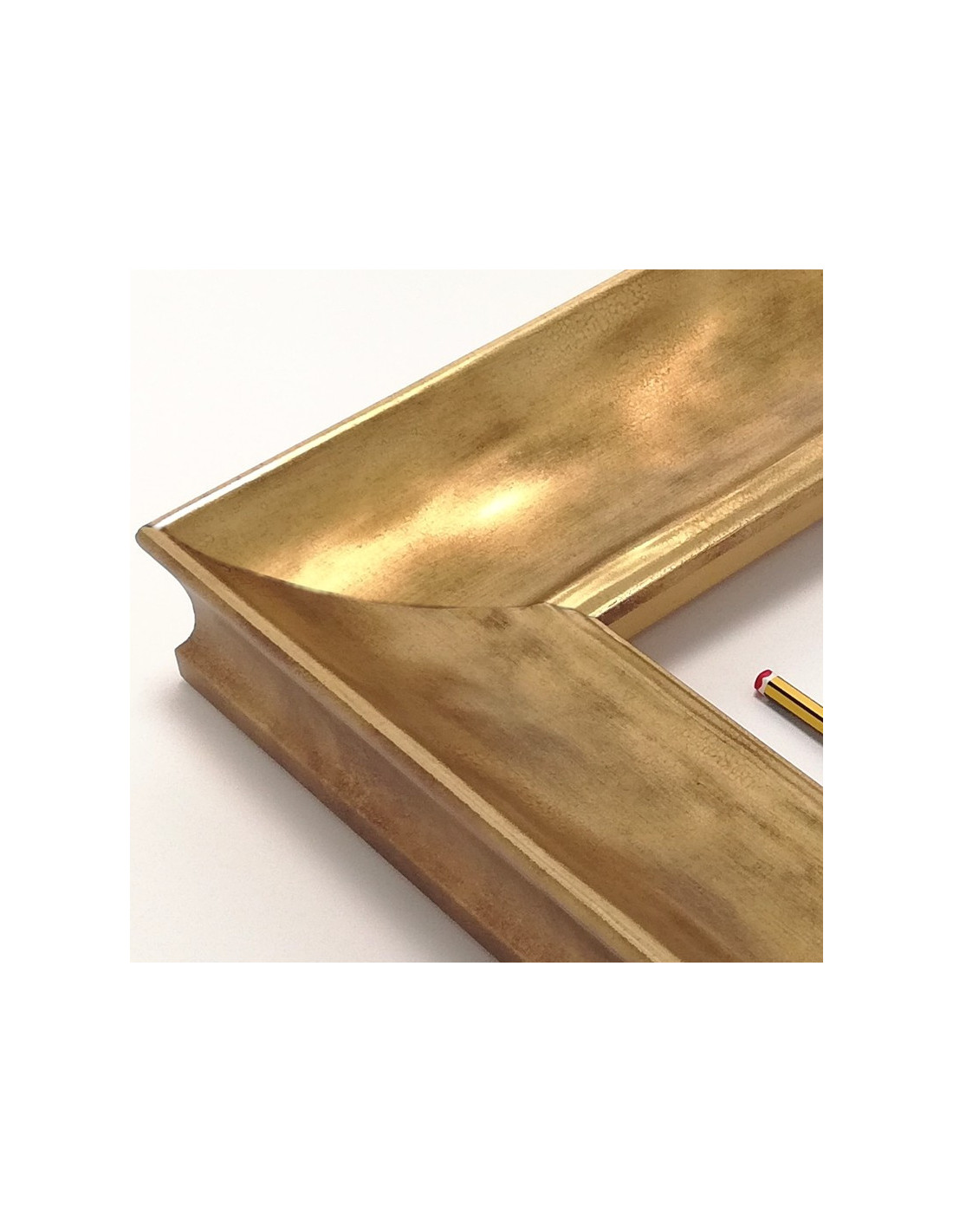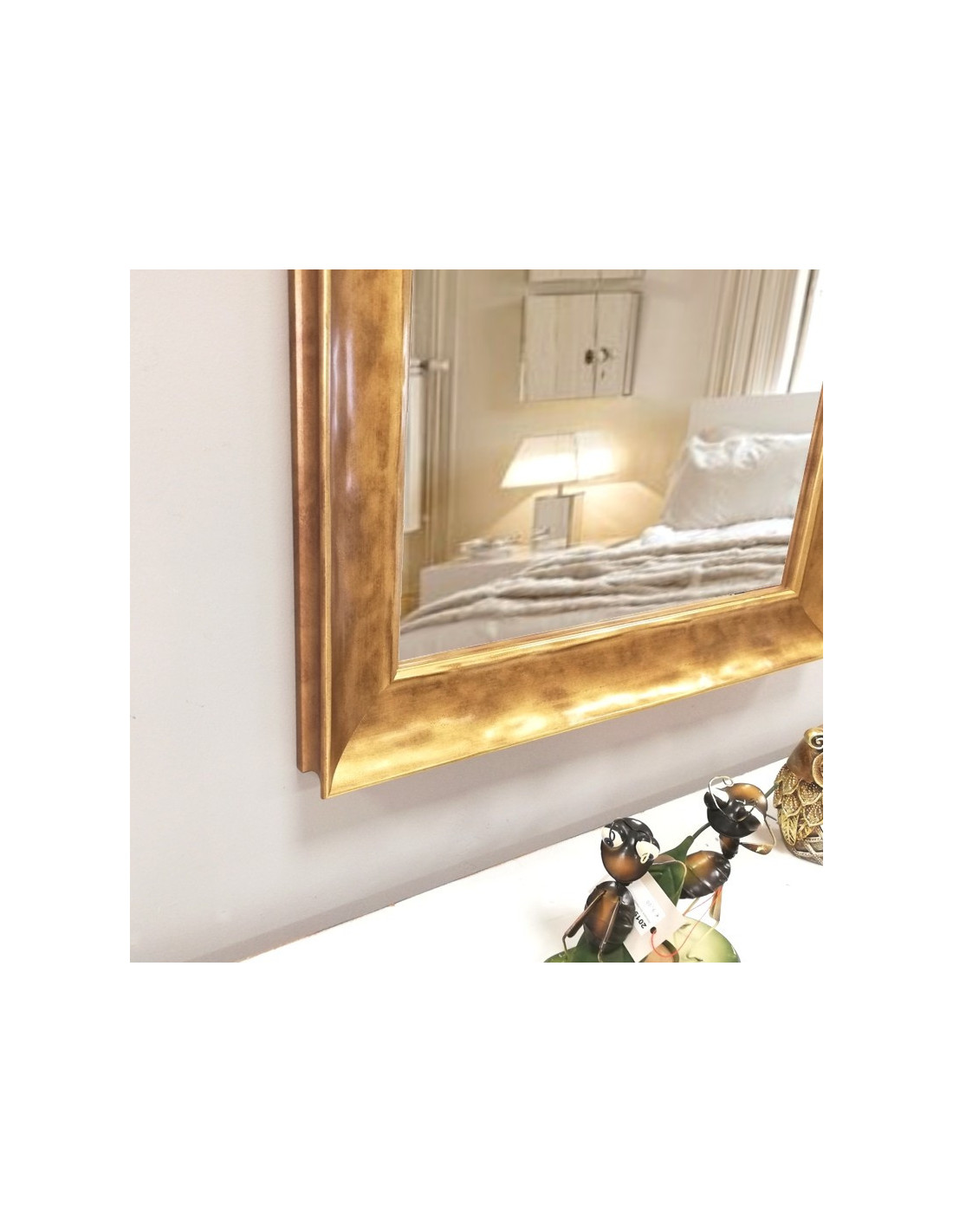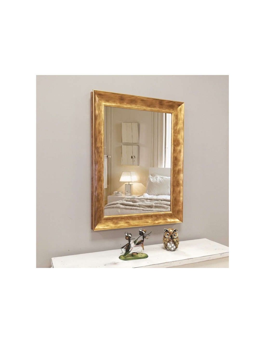 Espejo con marco dorado. Marco en madera de pino decorado en oro envejecido. Marco tipo amartillado, simula el metal trabajado a martillo.