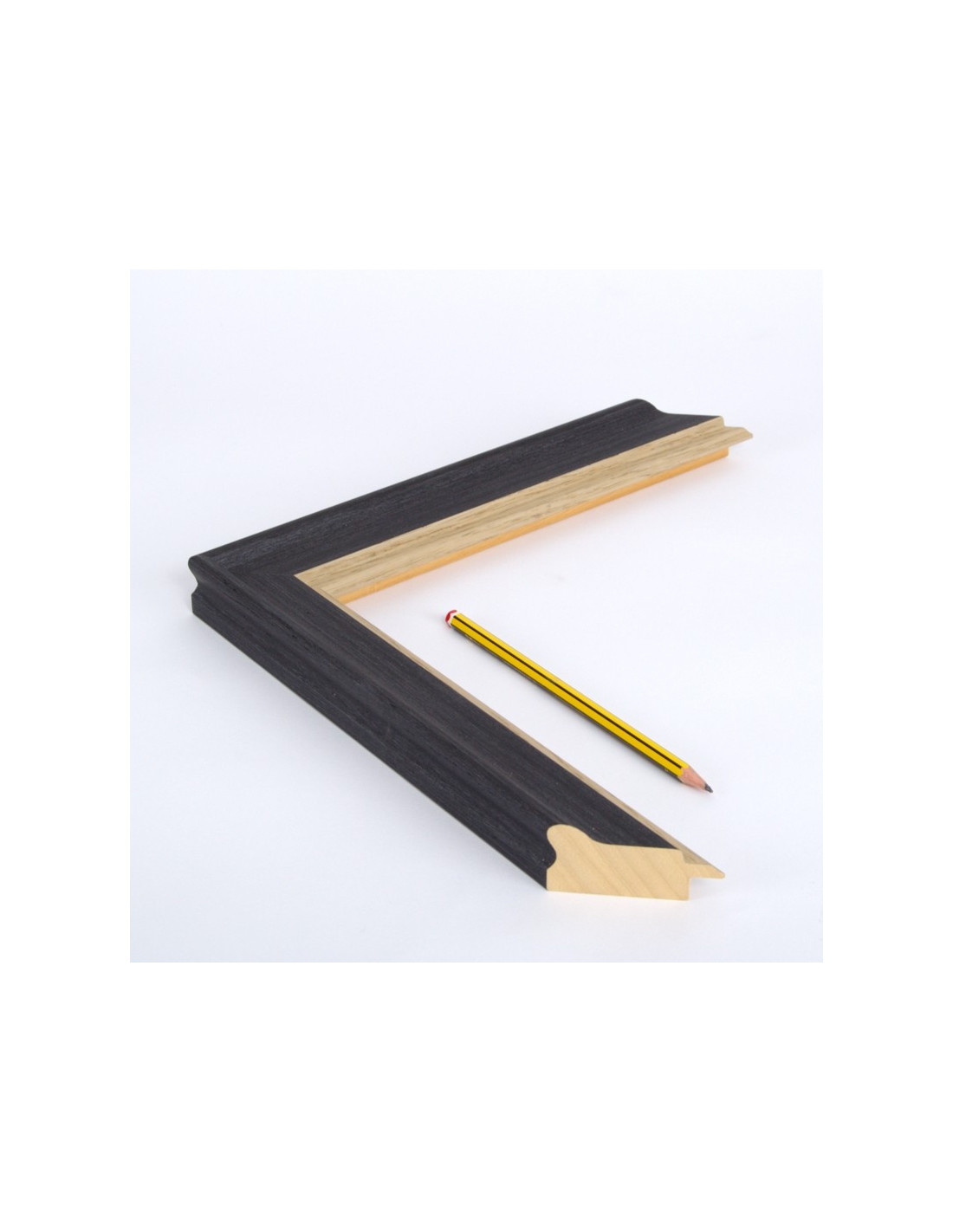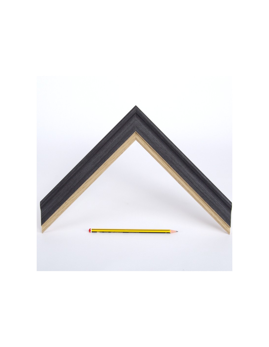 Moldura en madera de Ayús decorado en color grafito y filo roble.