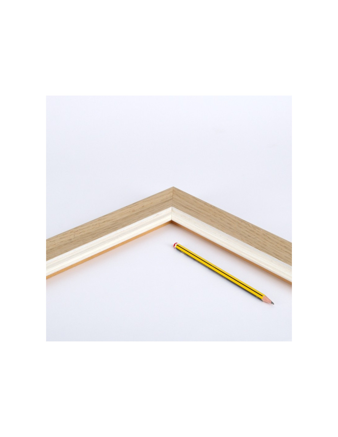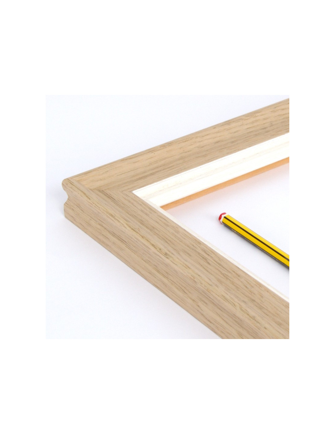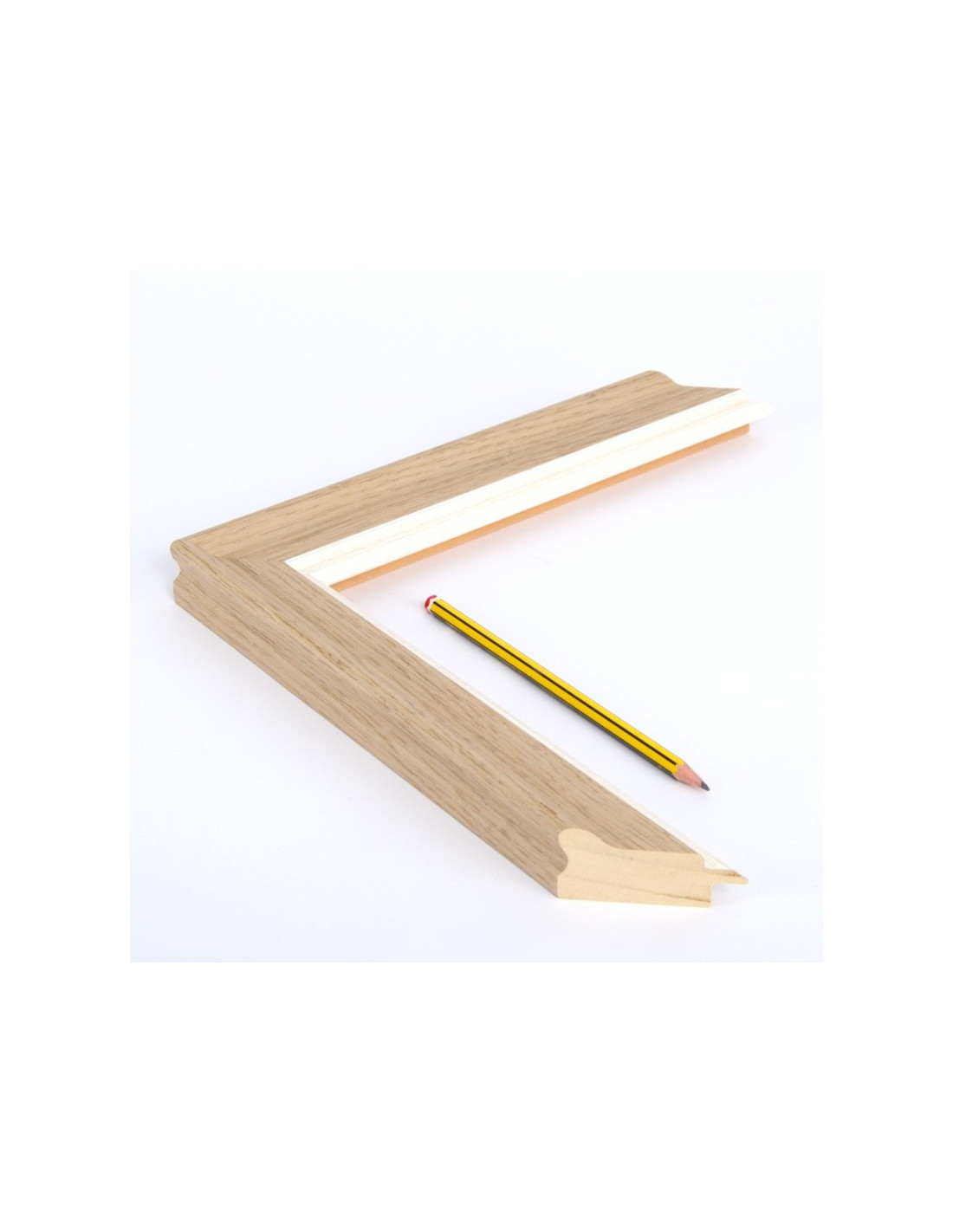 Clásico perfil para cuadros. Decoración actual en madera de roble natural y filo blanco decapé.