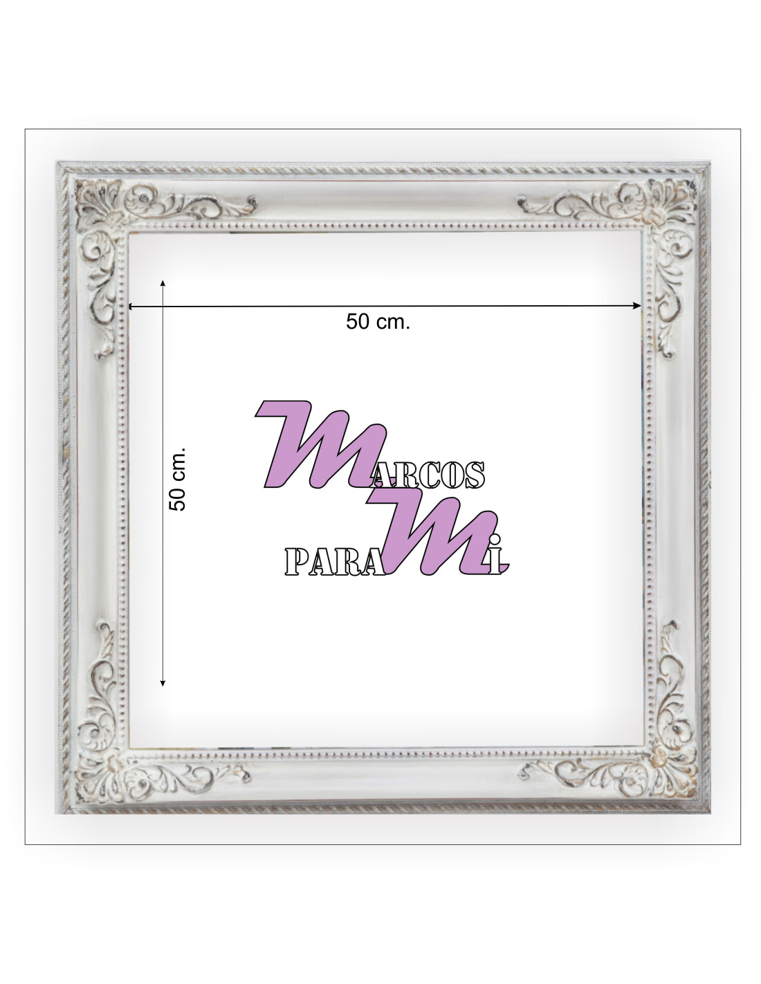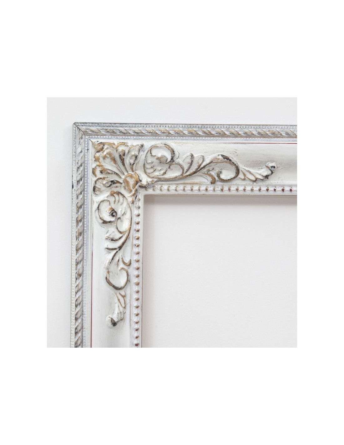 marco a medida blanco decapé con adornos en las esquinas