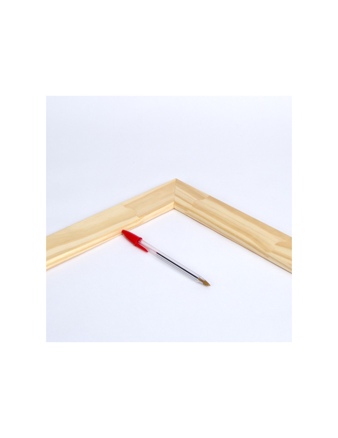 Medidas de la madera: 35x45 mm. El chaflán permite que la tela quede tensada y no toque a la madera.