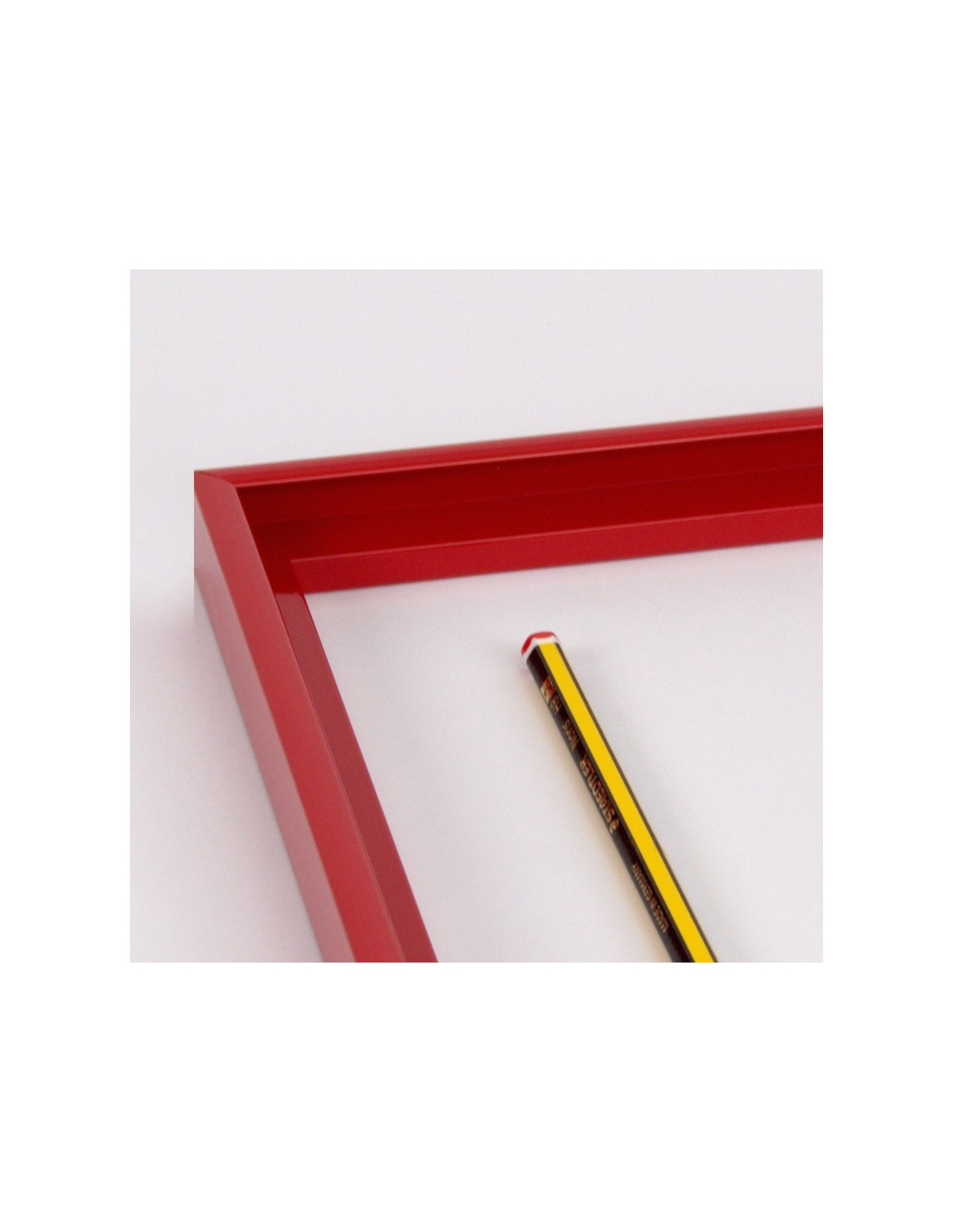 Moldura de aluminio en color rojo. Marco tipo kit de fácil montaje. Incluidos todos los elementos necesarios para su montaje.